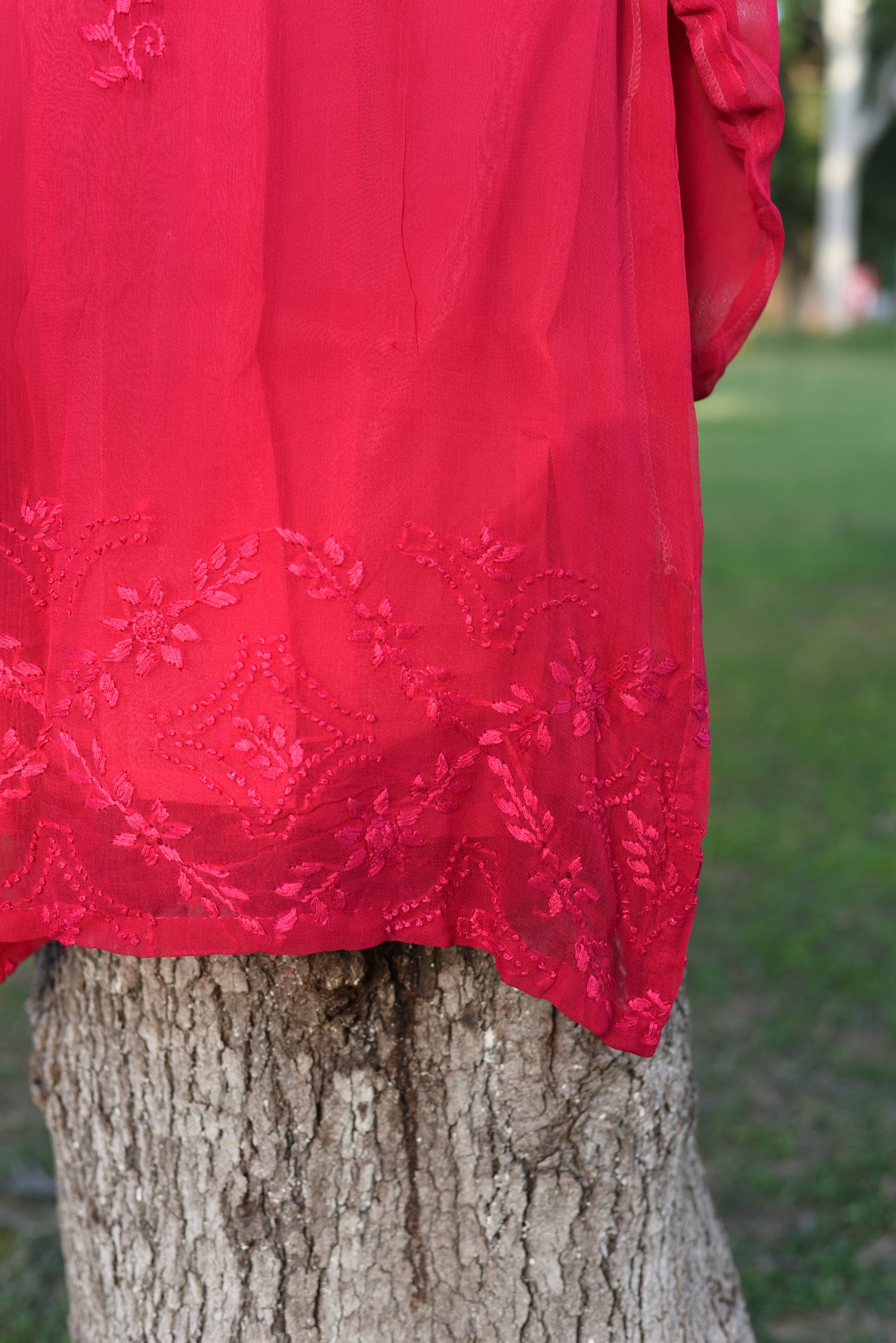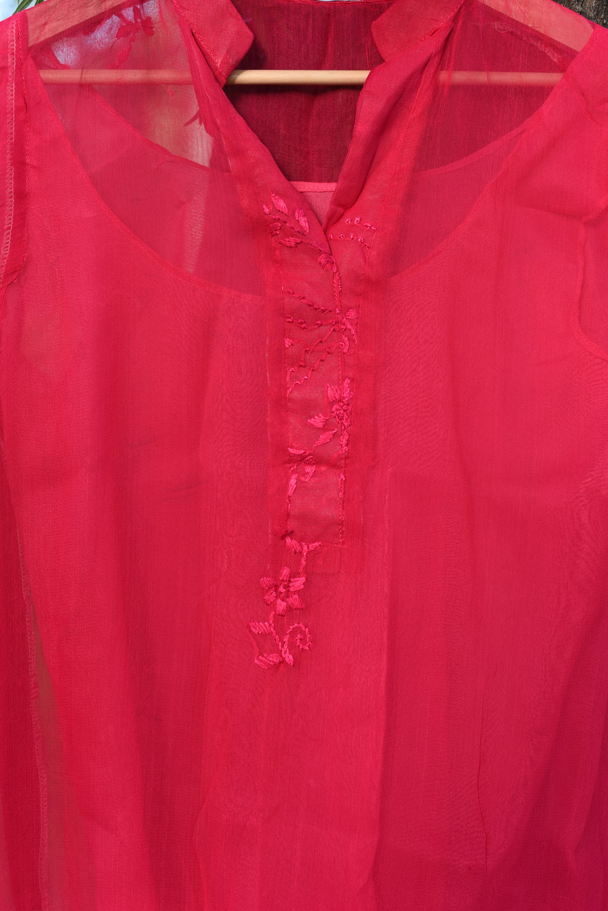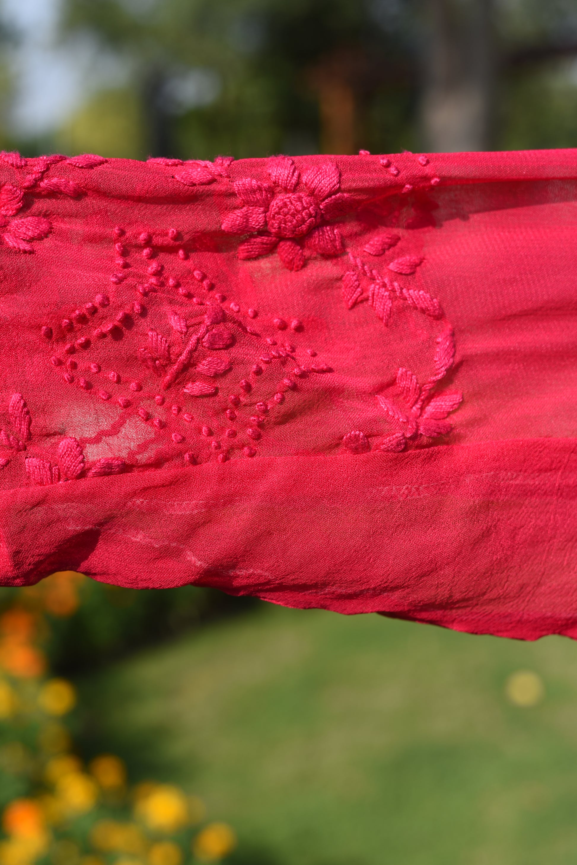 This elegant Pink chiffon shirt showcases exquisite hand embroidery, beautifully fusing traditional floral patterns with a modern, Western-inspired silhouette. Lightweight and effortlessly graceful, it features detailed embellishments on the neckline, sleeves, and hem—making it the perfect choice for women who value heritage craftsmanship with a contemporary twist.